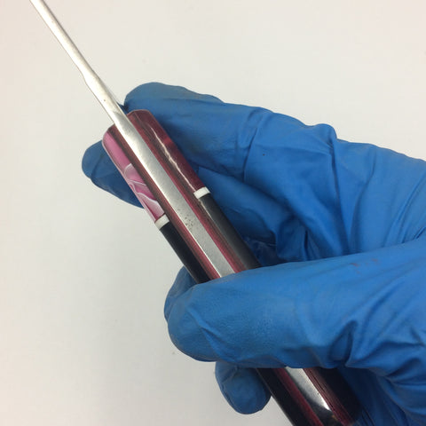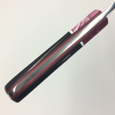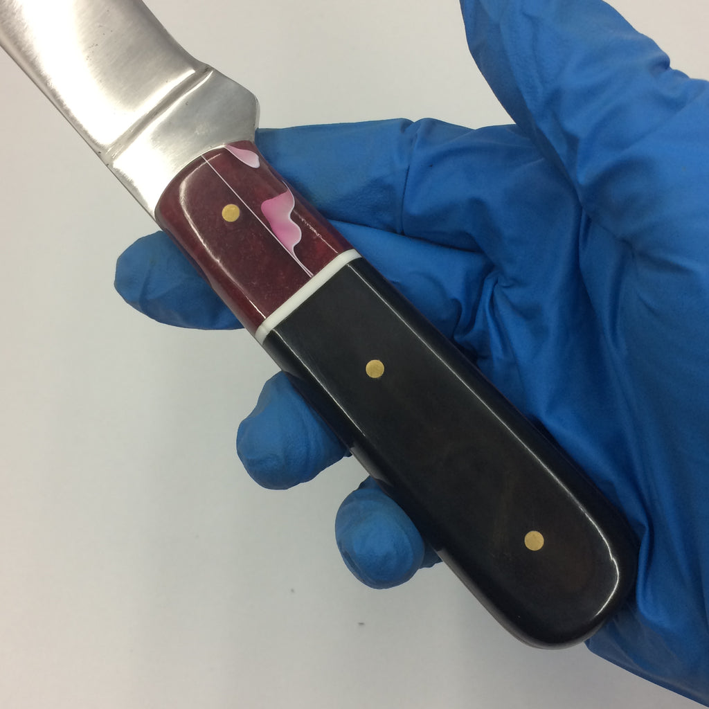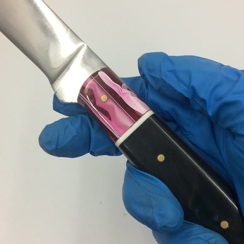 Handle Material: WoodRiver® Acrylic, black Carabao Horn, custom composite Pink liner